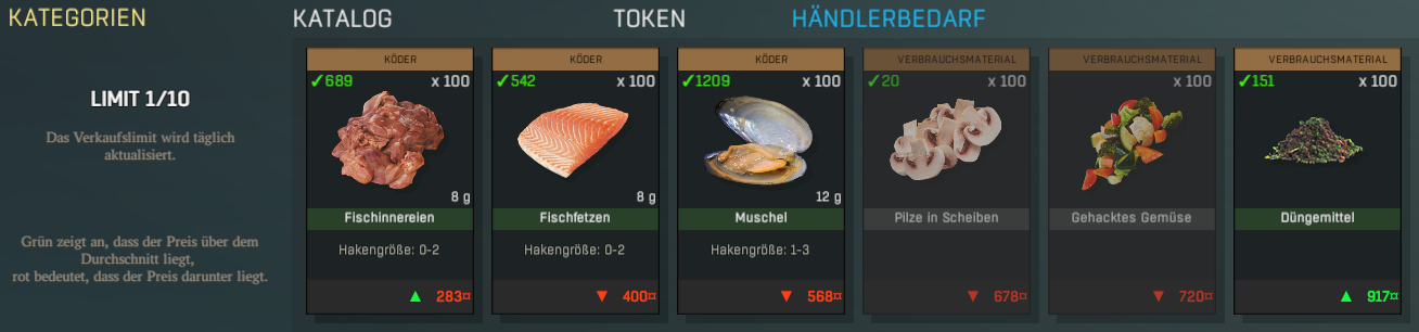 Abgepackte Filets lohnen derzeit also nicht. Dafür geben die viel zu wenig Credits im Verkauf.