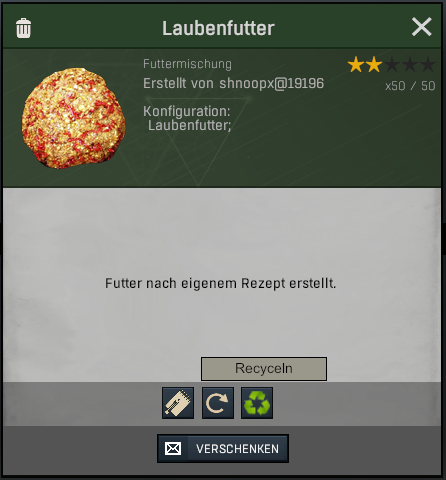 20 Pakete Laubenfutter kosten 320 Credits