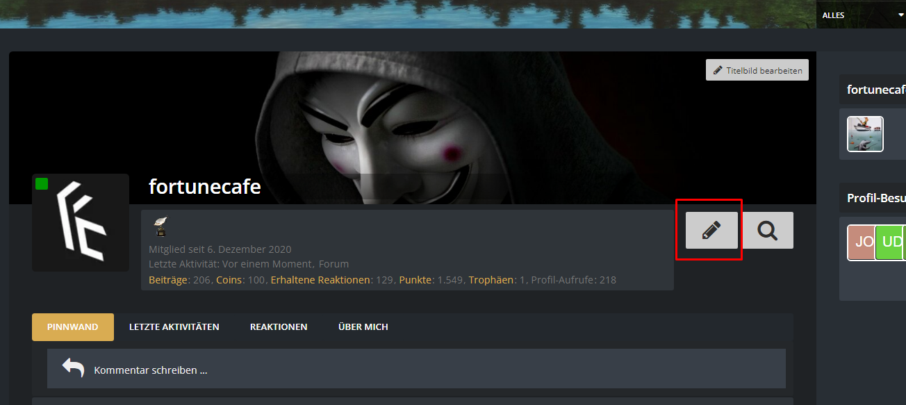 Zuerst geht ihr auf euer Profil und klickt auf dem Stift.