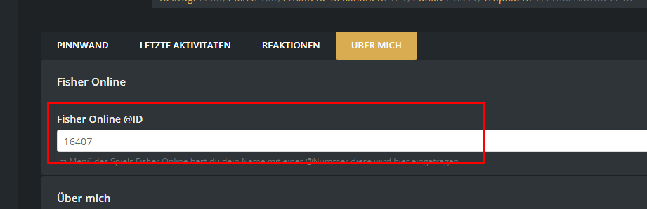 Nachdem du das angeklickt hast siehst du unter dem Tab "Über Mich" die Zeile wo du deine ID eintragen kannst wie in diesem Bild zu sehen.