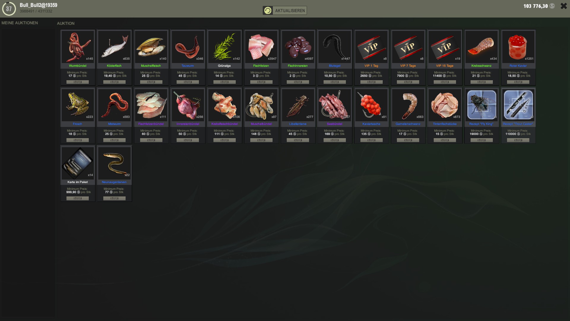 Um das Forum uneingeschränkt nutzen zu können, musst du dich kostenlos registrieren! Dann hast du auch einen Zugang zu den ganzen Gewässer Spots - Trophäen Bilder austauschen und noch viel mehr Informationen die dir das Angeln in Fisher Online leichter machen. Auch durch Aktivität hier im Forum gibt es ein Coin Shop worüber du dir Ingame Sachen kaufen kannst.