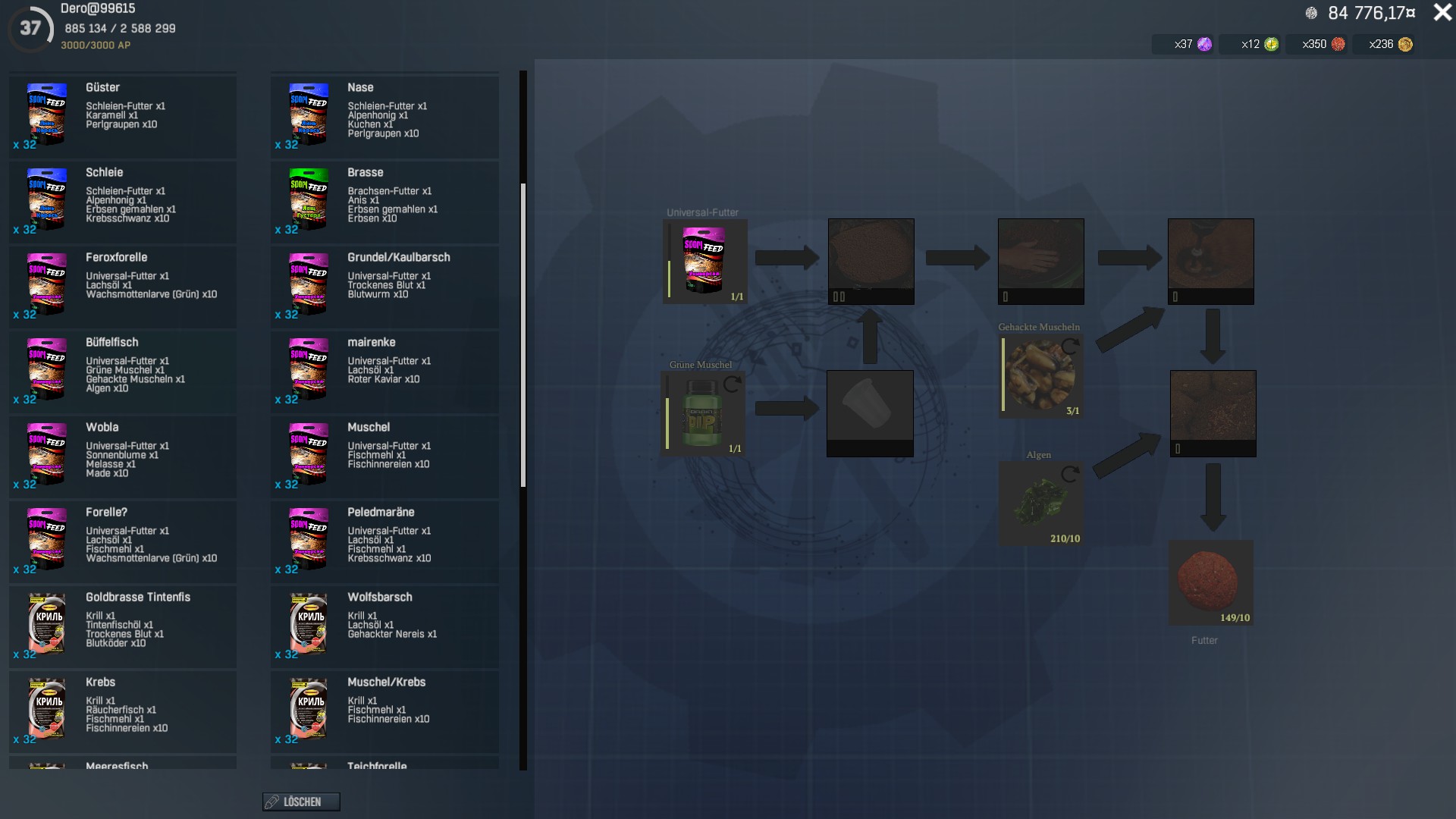 Futter ist eine eigenkreation die bei mir gut funktioniert. Die zusammensetzung könnt Ihr auf dem Screenshot sehen. Ansonsten normales Setup mit 2er Haken. Nehmt Euch zur not das Schleuchboot mit falls doch mal was großes einsteigt.