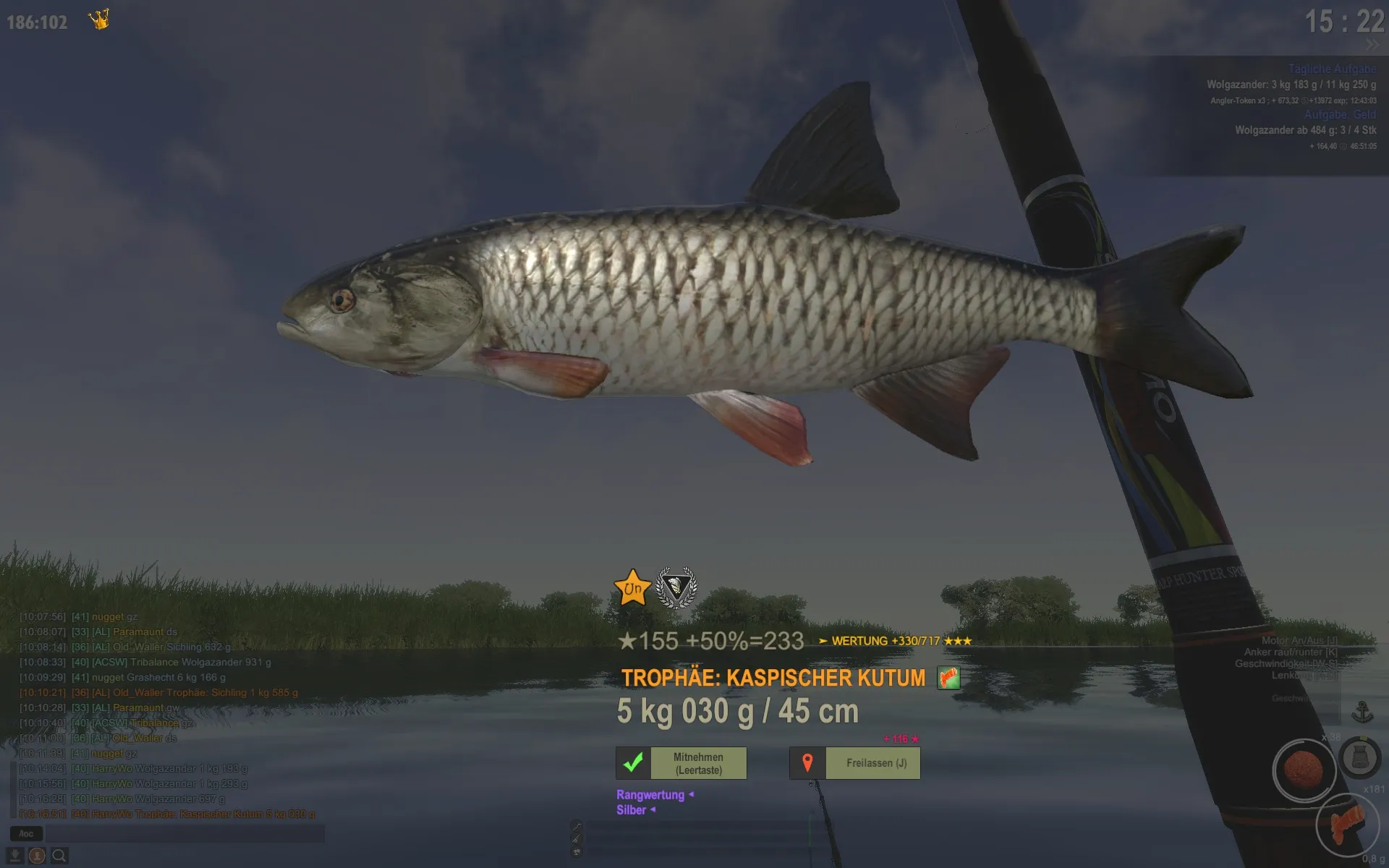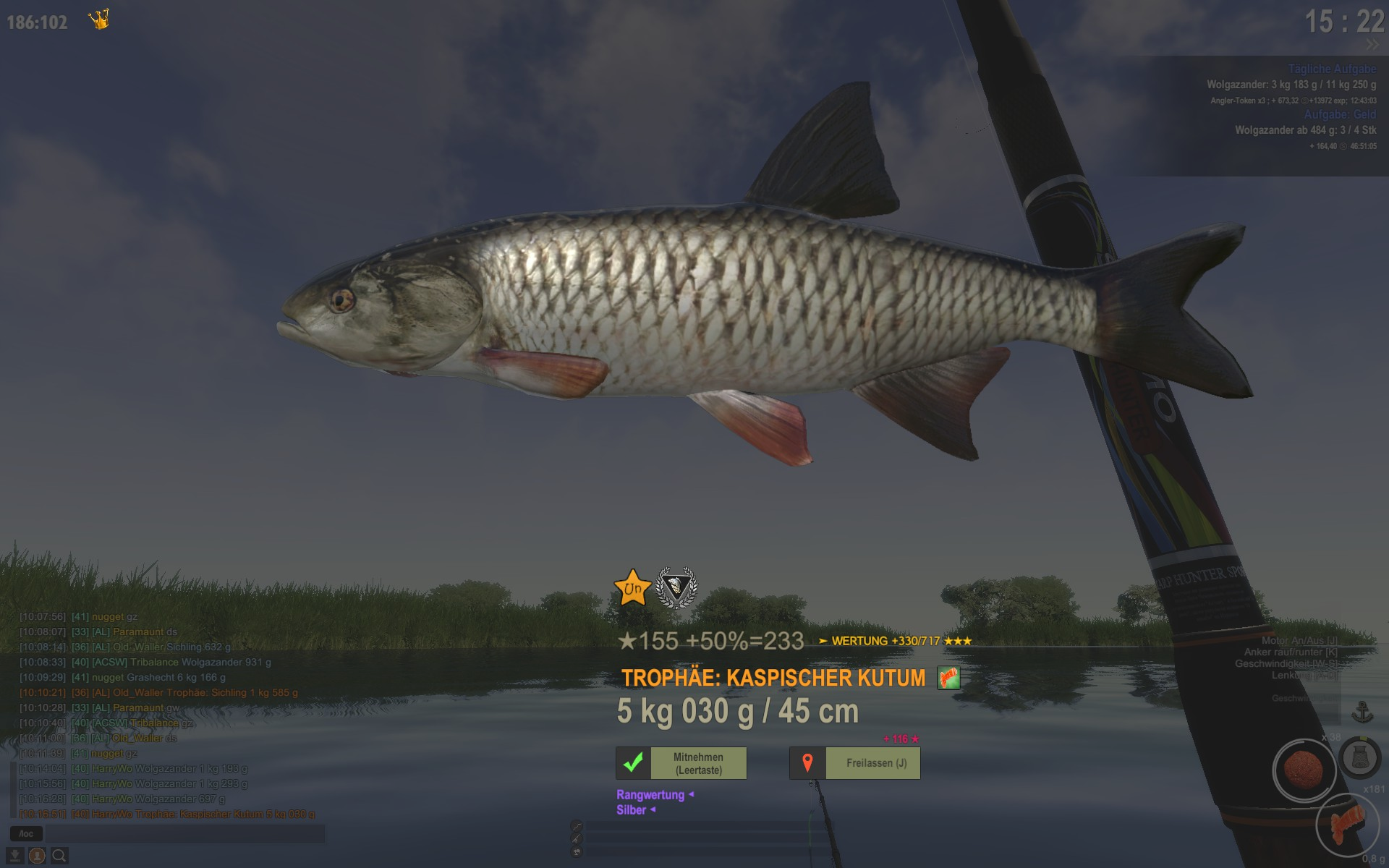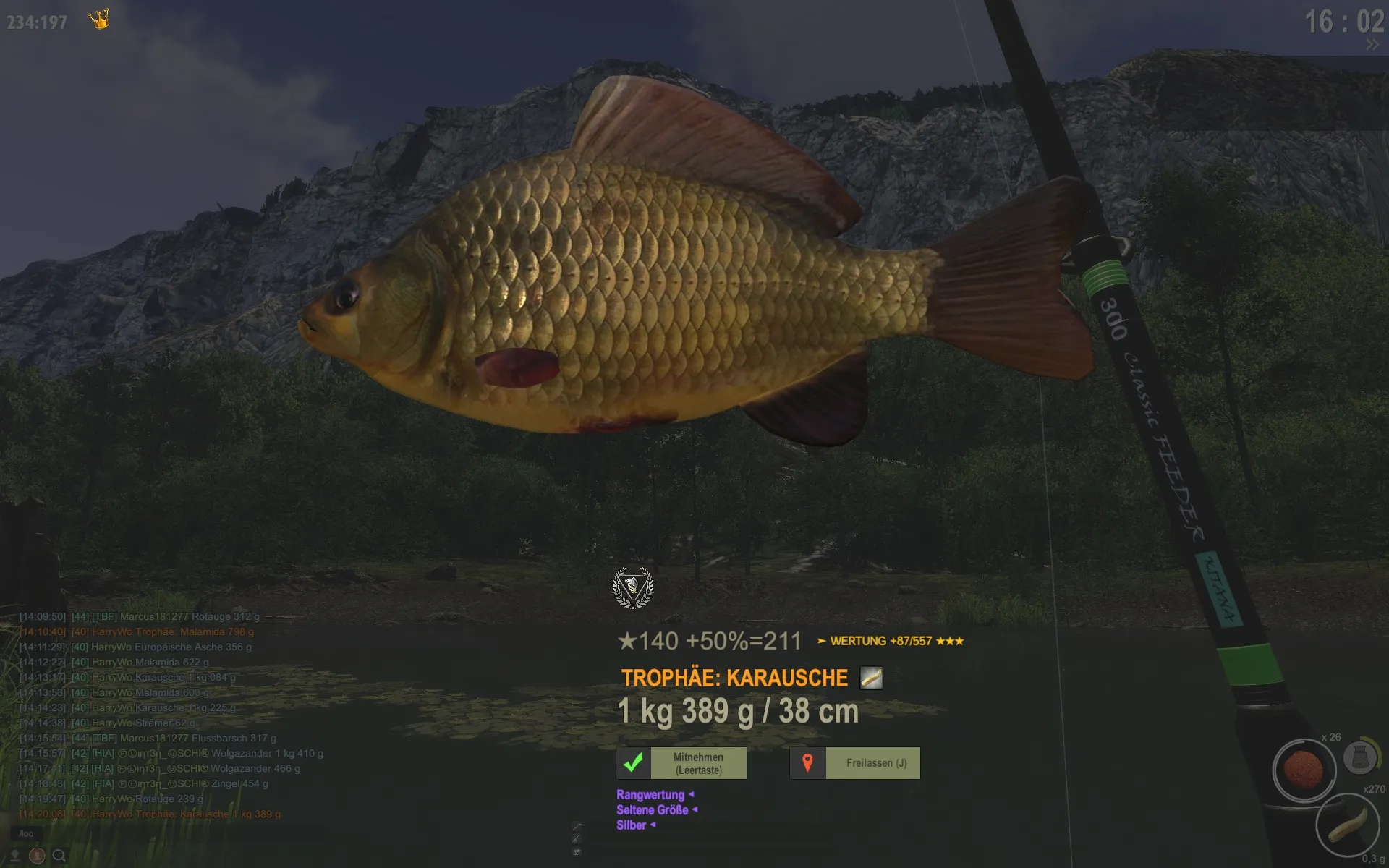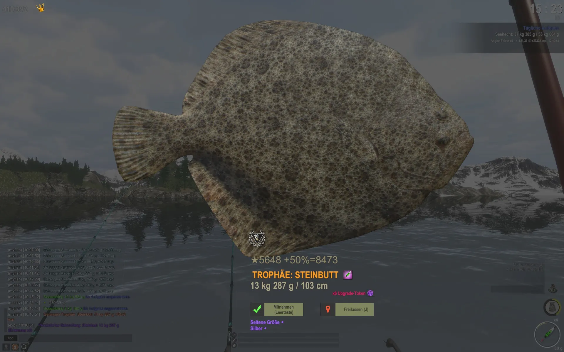 Also Koordinaten, Uhrzeit und Köder sind da für andere sicher hilfreich. Das Gebiet erkennt man ja meistens am Hintergrundbild.