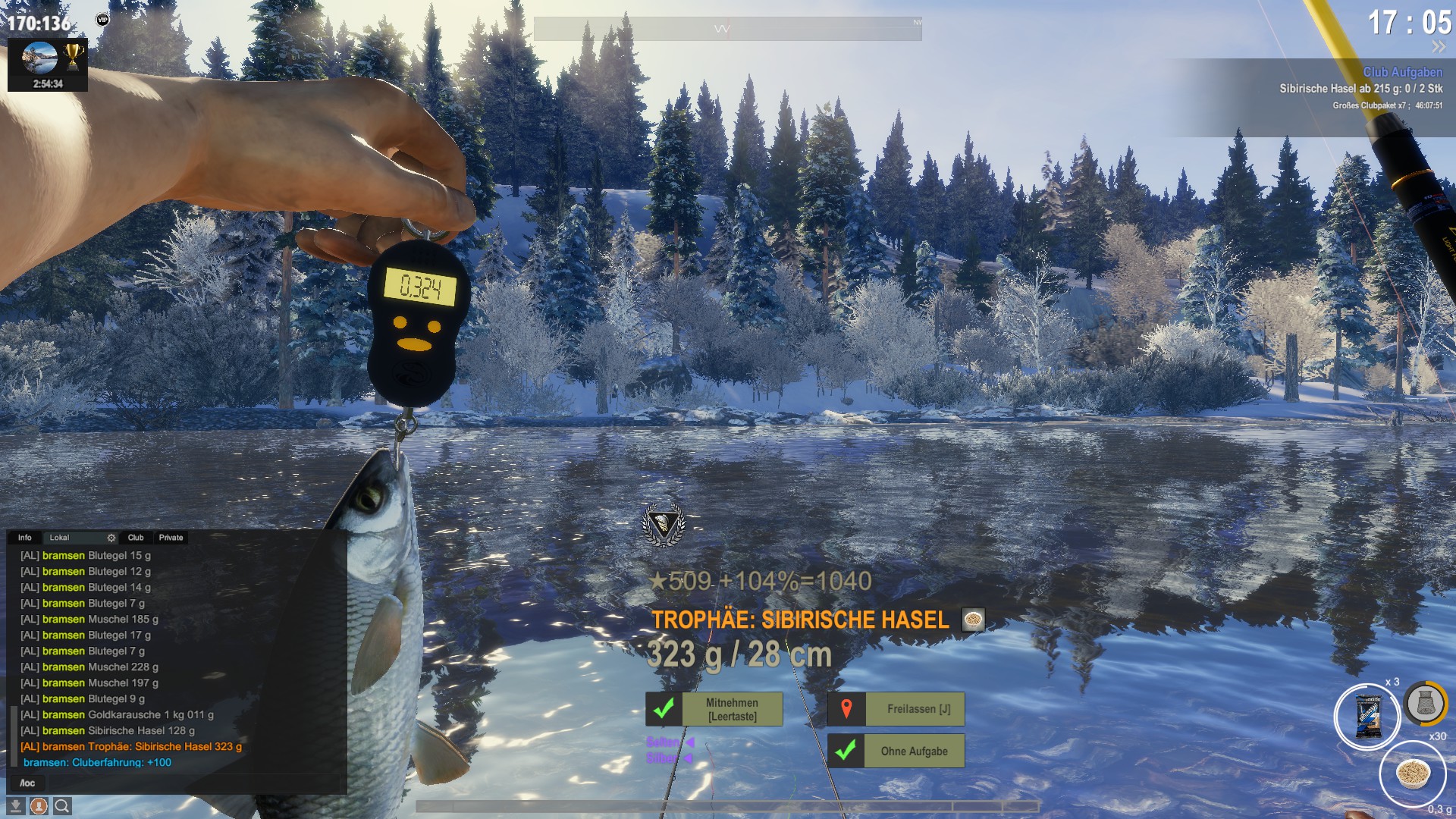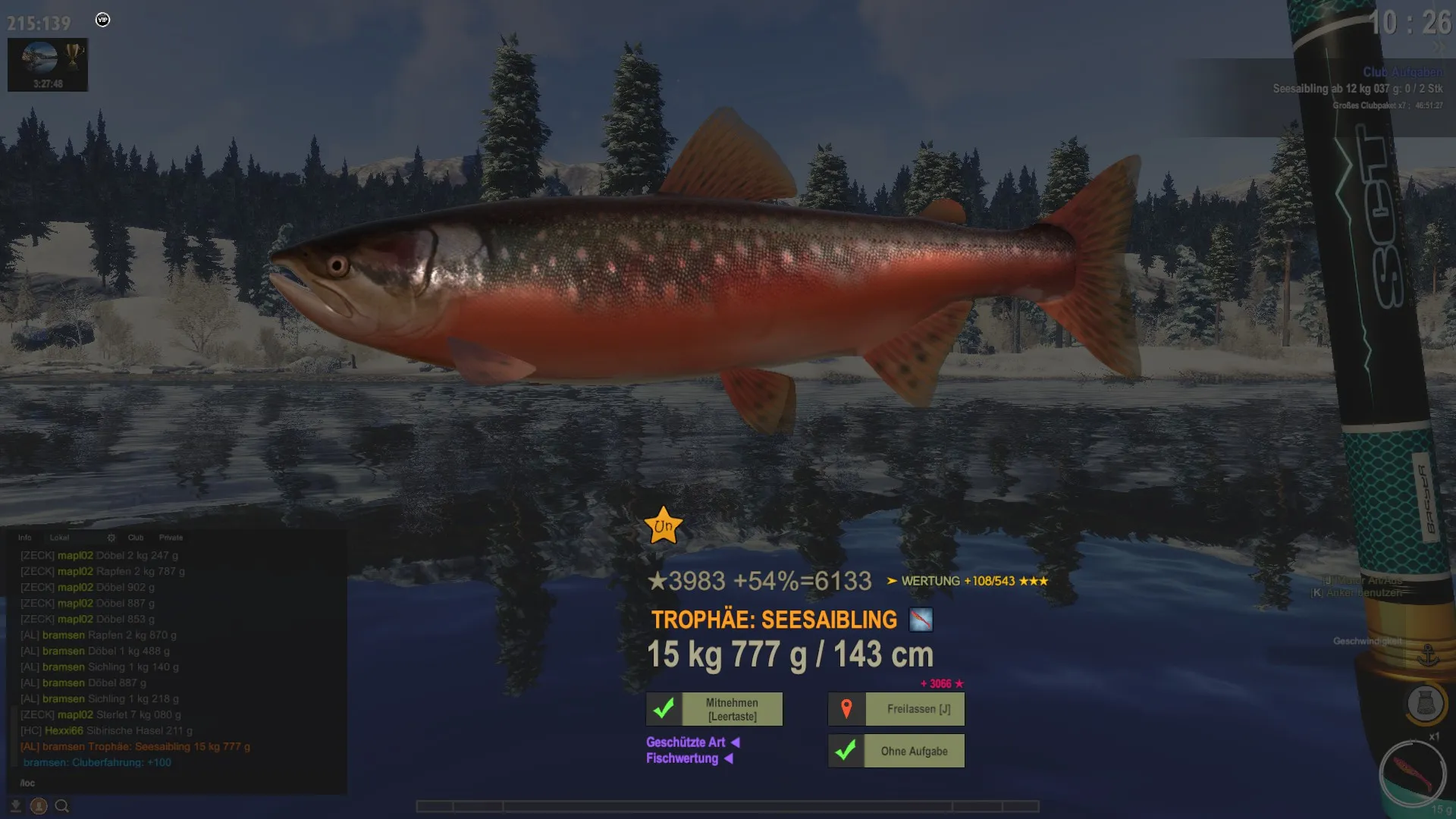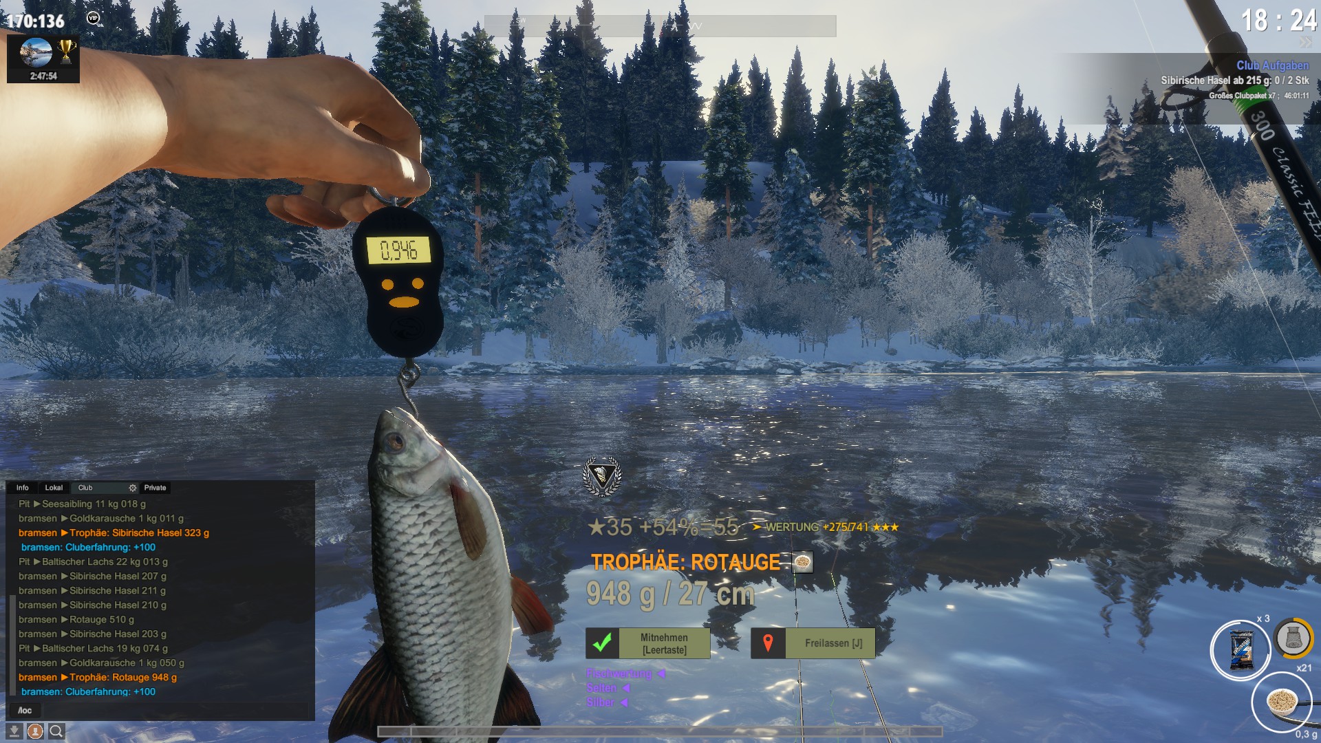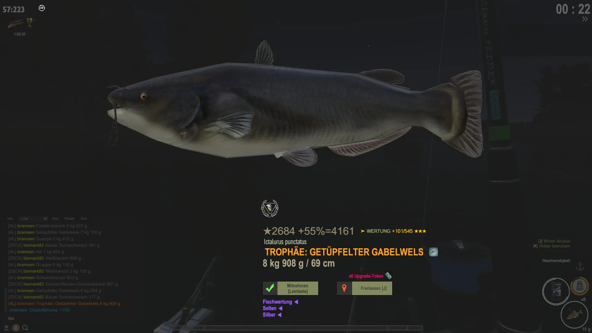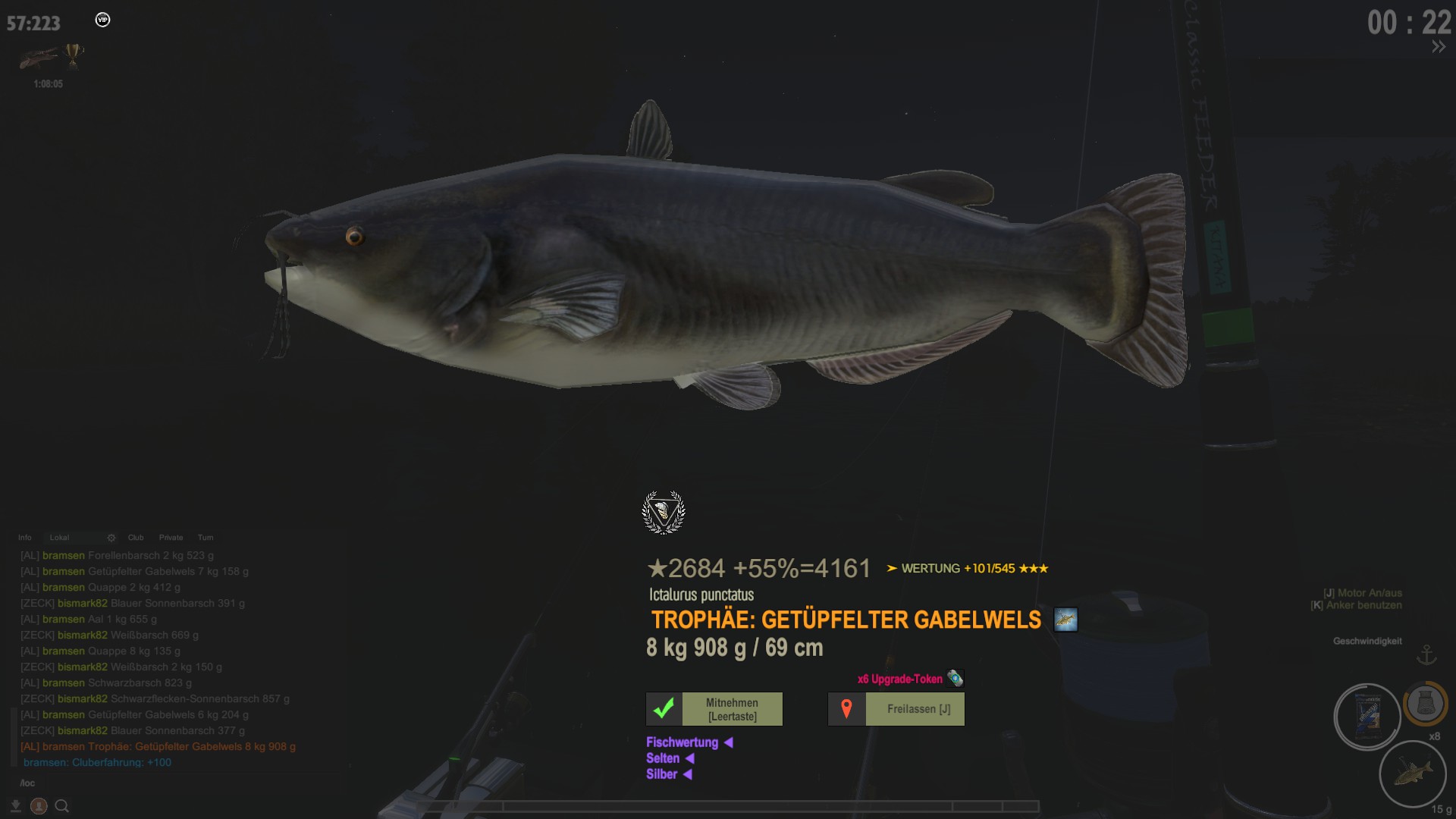Also hast du den Fisch um 24 Punkte verbessert und hast jetzt 404 Punkte für die Wertung der Fischart
