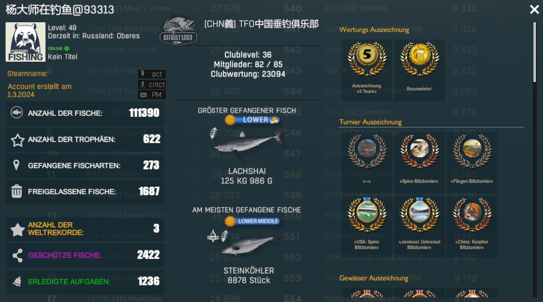 Anderes Beispiel wäre Kapinski wo z.b. die Karausche bei 650g schon Trophy ist aber nicht den Mindestensstatus erreicht und dementsprechend rausfallen.